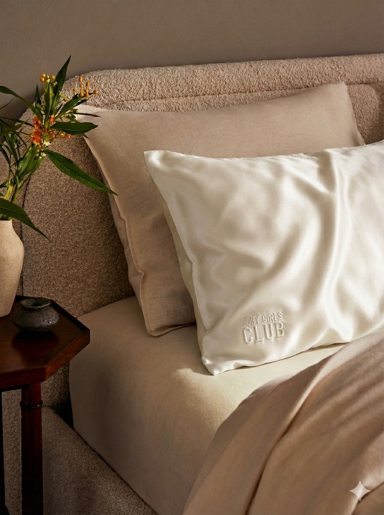 Dream in luxury with this 100% mulberry silk pillowcase. The lustrous fabric is hypoallergenic, and soft on the skin and hair, which helps to reduce friction, retain moisture and promote anti aging. With a zip closure and embroidered Cosy Girls Club logo, it will ensure you stay cosy all night. Size 75cm x 51cm.